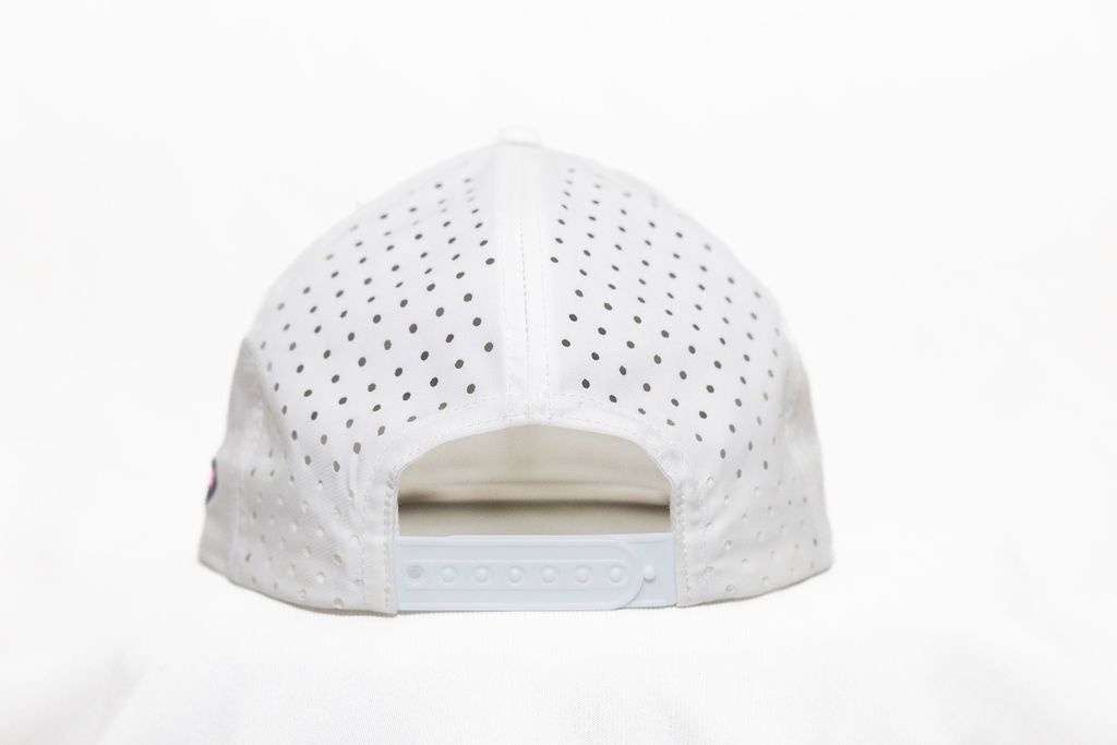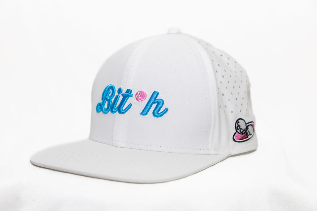 In a crisp white color, this 6-panel cap features a flat brim and “BITH” embroidered in bold blue 3D stitching, accented by a playful pink golf ball for a unique and striking look. On the side, the logo is embroidered in white and pink, adding a refined detail that complements the overall design. Crafted with perforated fabric, the BLU Cap is lightweight, breathable, and durable, ready to handle any condition on or off the course.