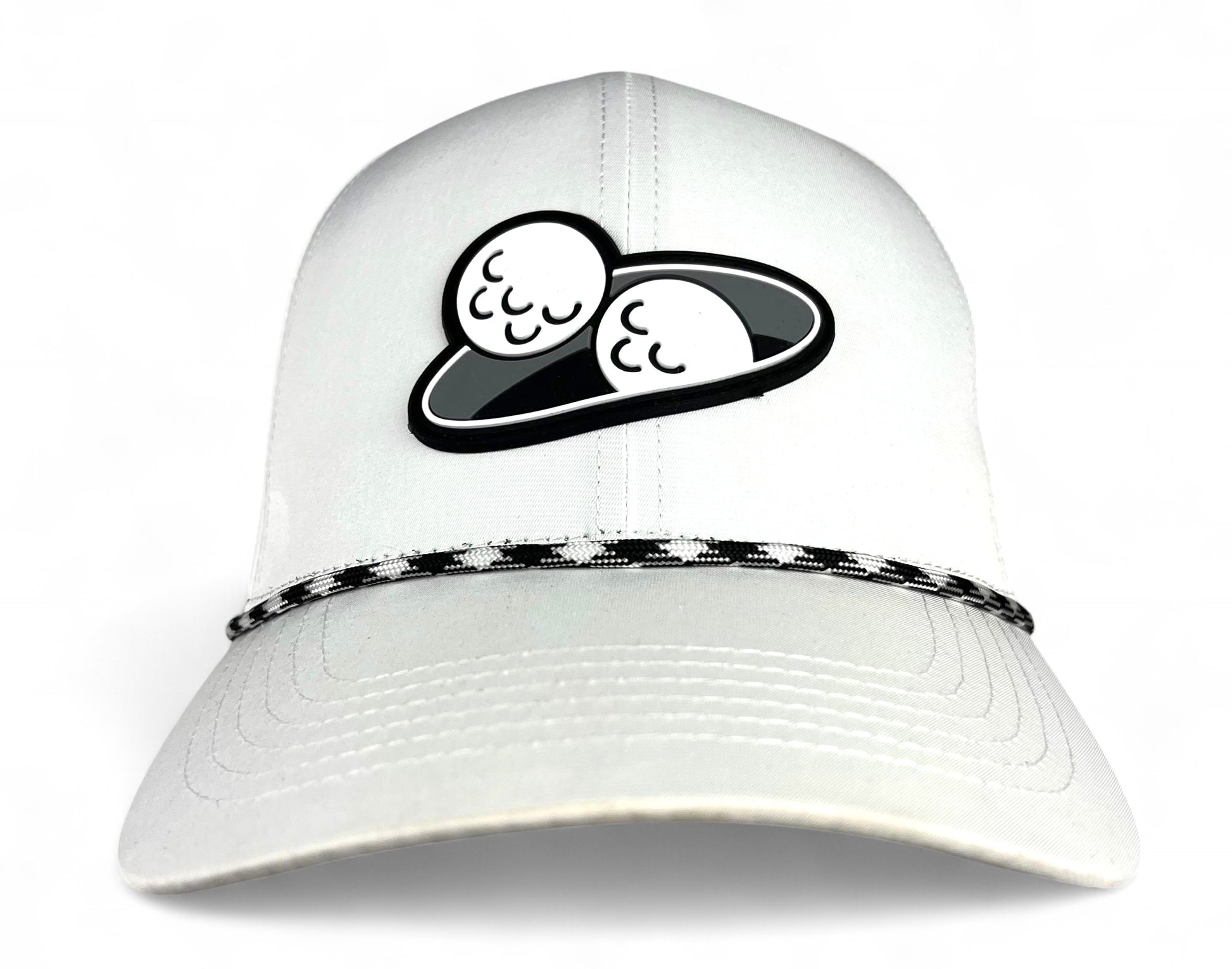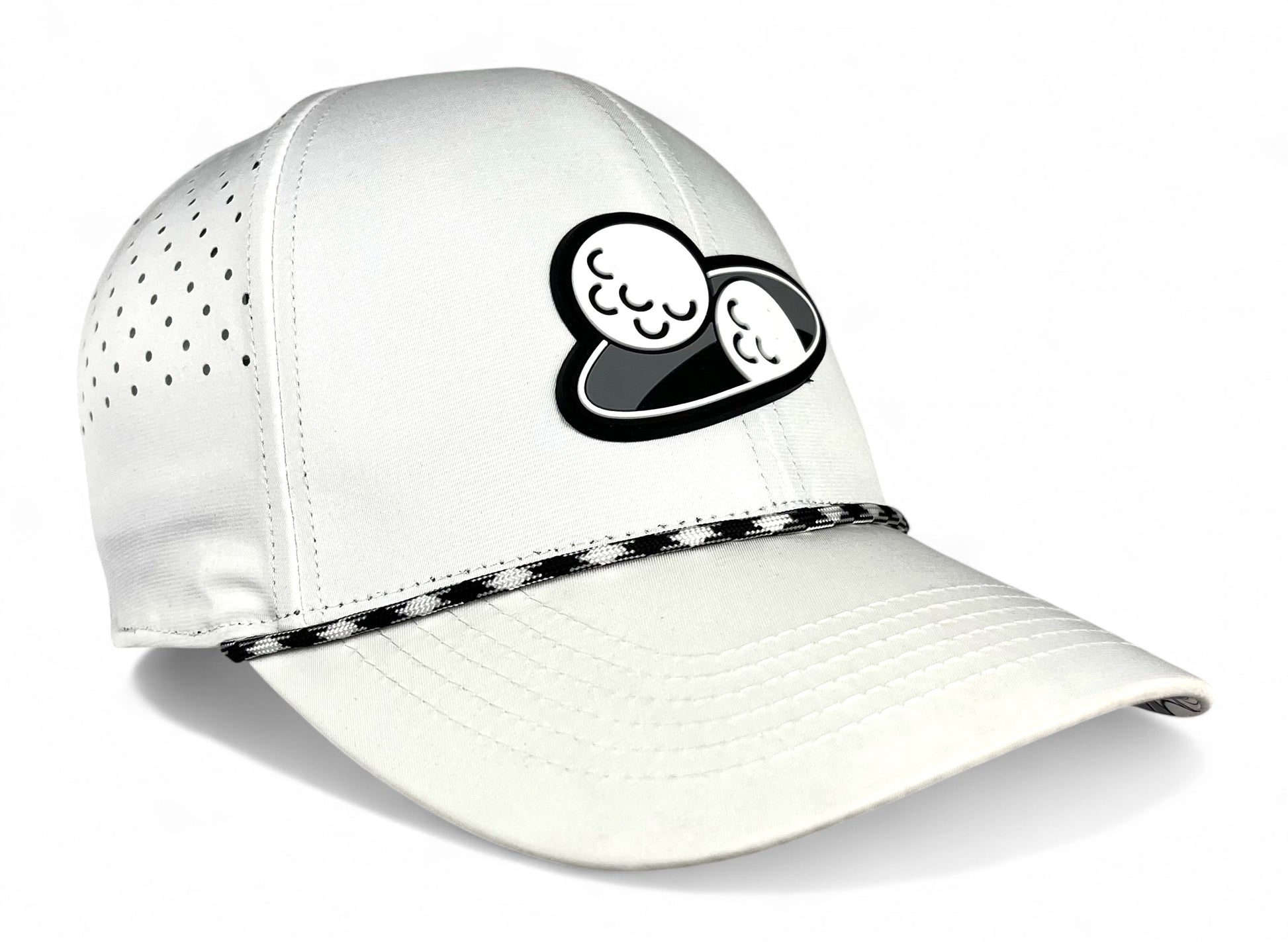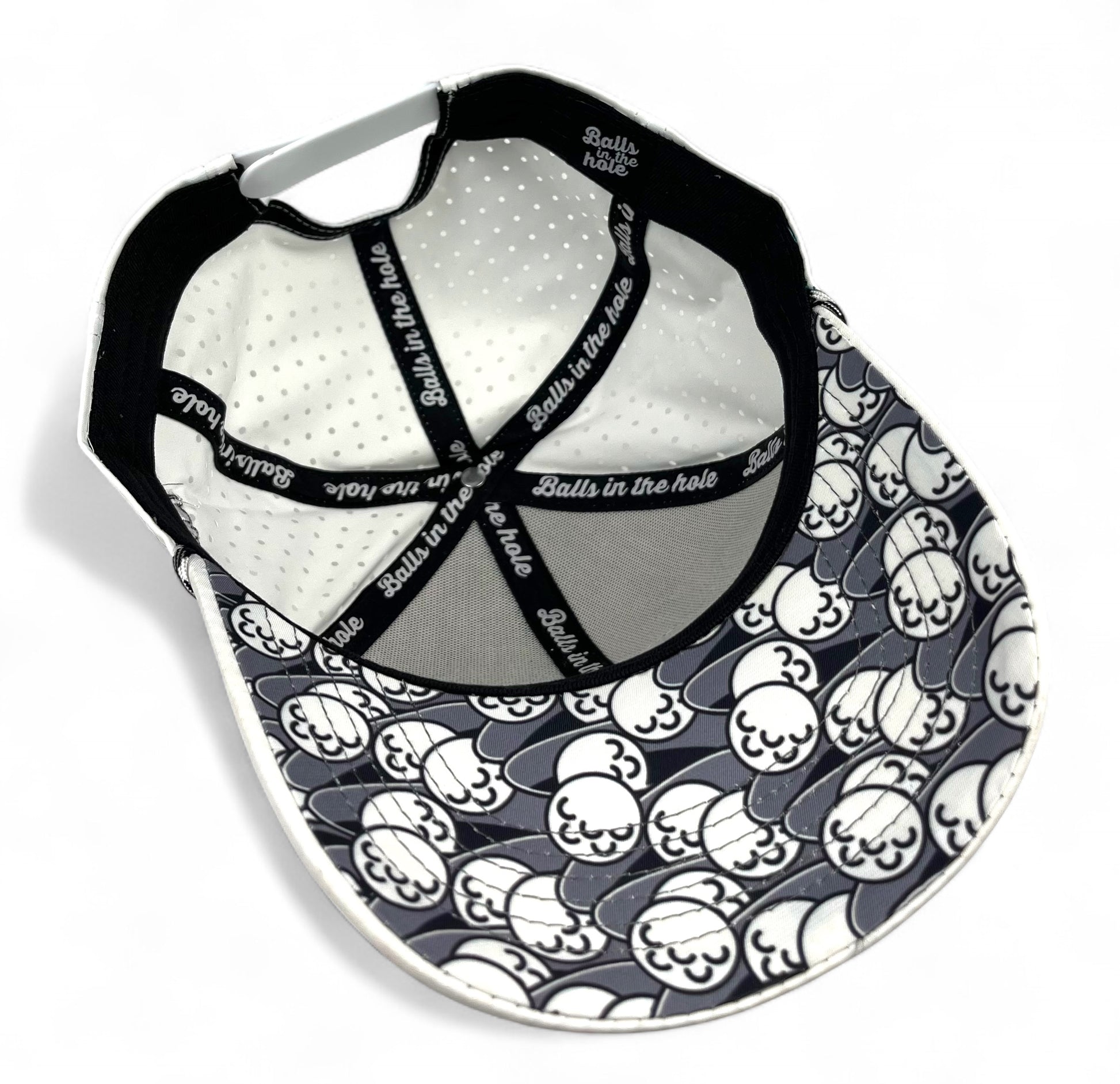 In a crisp white color, this 6-panel, baseball-style cap features a curved brim and a striking rubber patch logo on the front in white, black, and grey. A black-and-white patterned rope above the brim adds a stylish touch, while “Balls in the Hole” is embroidered on the side in white with a black outline, showcasing the brand’s signature detail. Under the brim, a sublimation of the logo in white, black, and grey is repeated for a subtle yet refined finish. Crafted with perforated fabric, the LA W Cap is lightweight, waterproof, and floats, offering superior performance in any weather conditions.