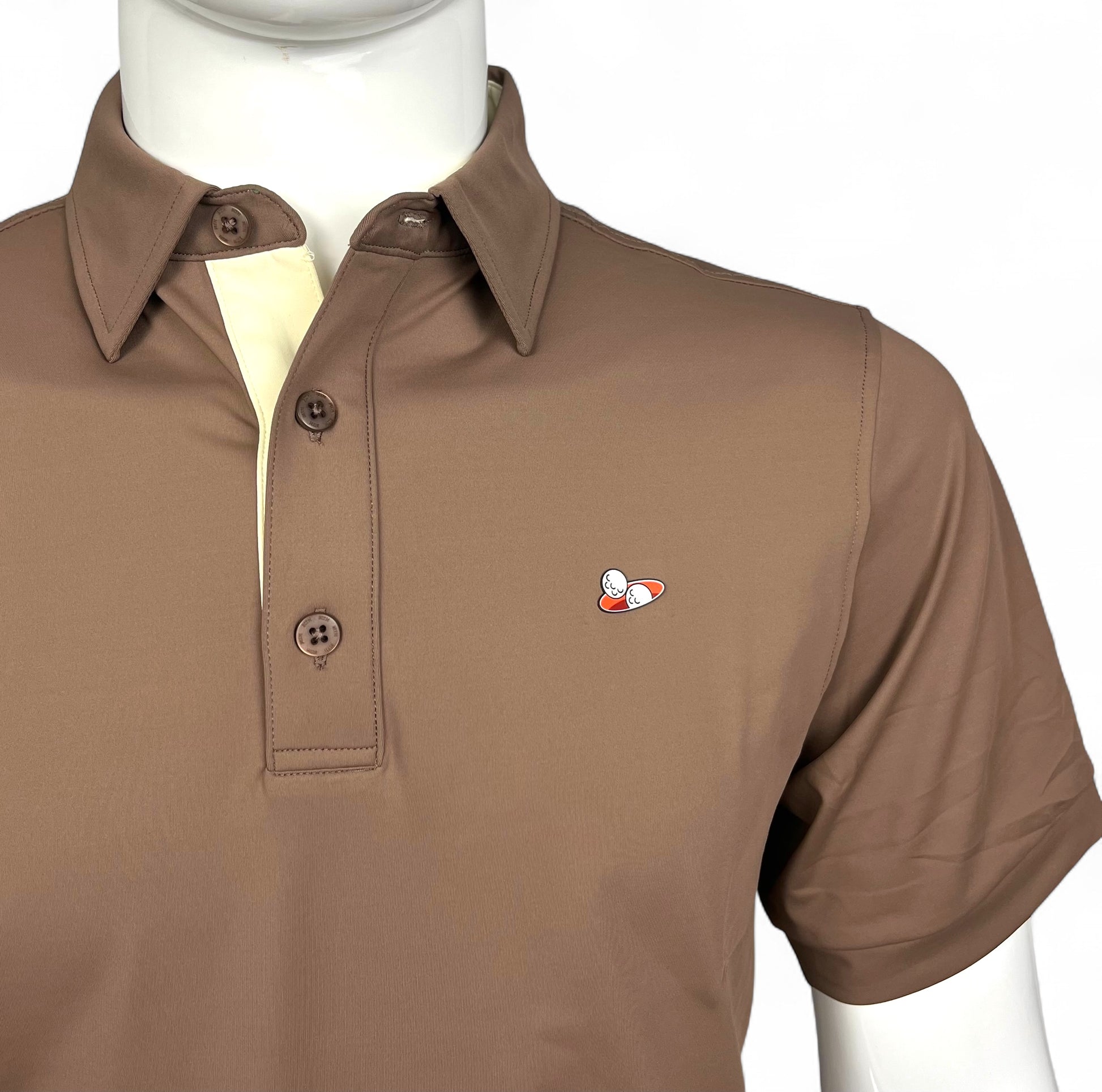 The MOCHA Polo is built for those who like to roll quiet—but never unnoticed. A solid brown look that delivers clean sophistication on and off the course, this one hits different. It features our signature red vinyl logo on the chest, crème detail inside the neck for a subtle contrast, and brown buttons to keep everything tight.