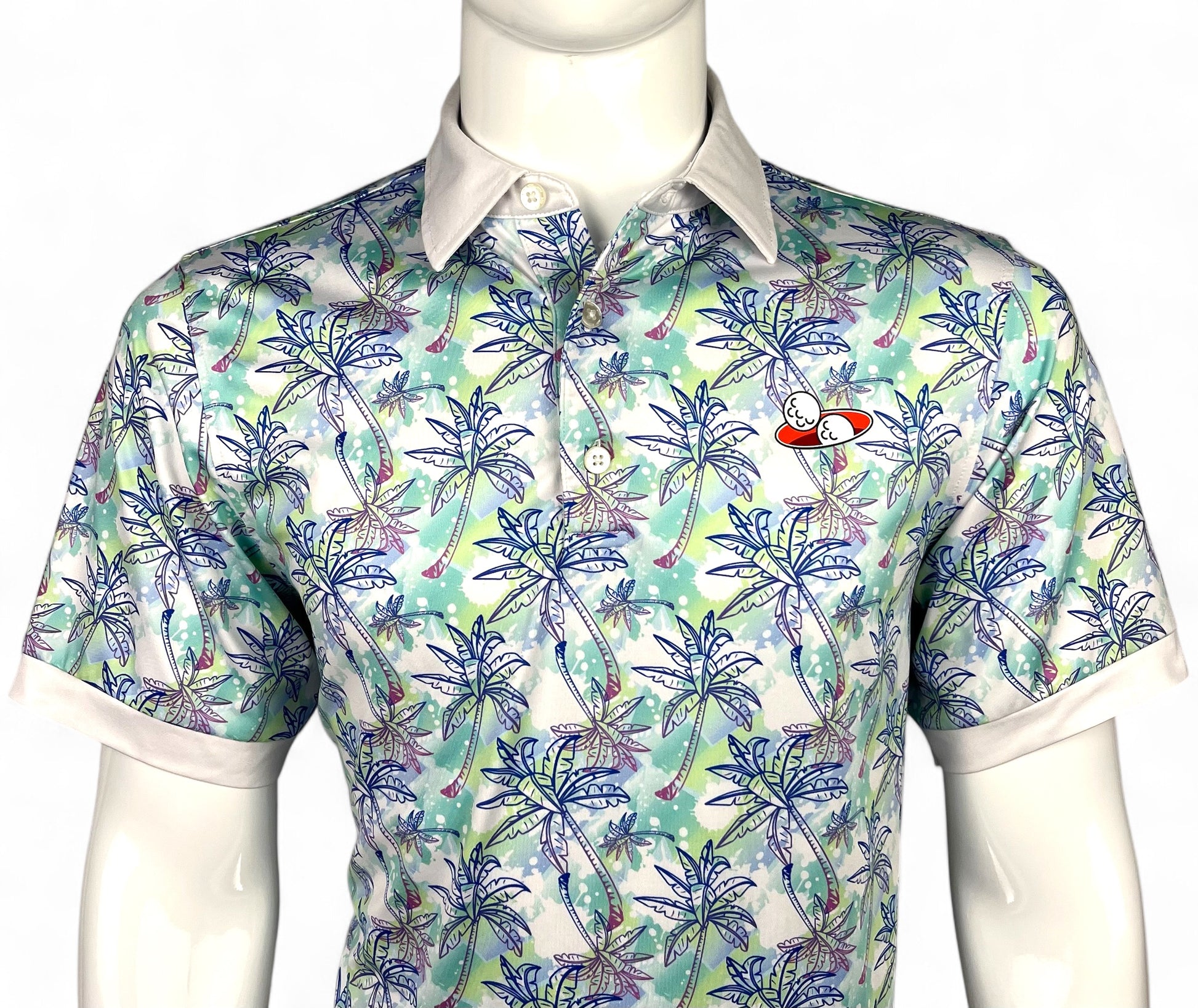 The PALMS POLO showcases a vibrant tropical palms print in a stunning mix of violet, green, white, and blue, perfect for adding a fresh pop of color to your wardrobe. The brand’s logo is displayed on the chest, completing the look with a touch of signature style. Ideal for the golf course or casual outings, this polo combines bold, tropical flair with all-day comfort.